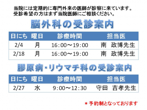 2月脳外科 膠原病・リウマチ科 予定表