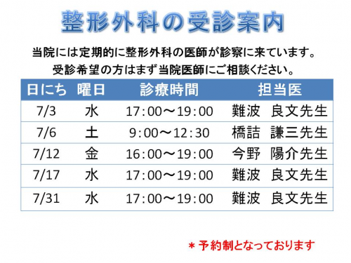 7月 整形外科 予定表