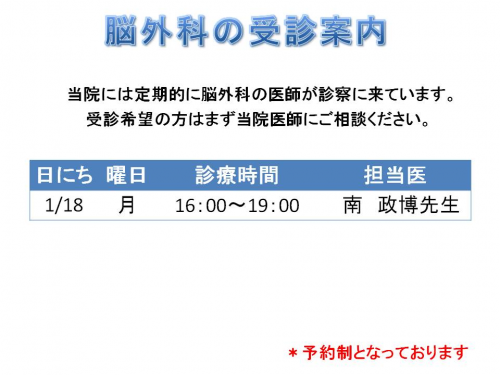 1月脳外科 予定表