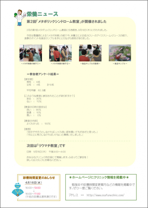 ・栄養ニュース 第2回メタボリックシンドローム教室が開催されました