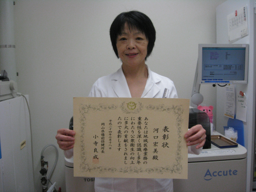 岡山県備前保健所より地域医療事業功労賞をいただきました。