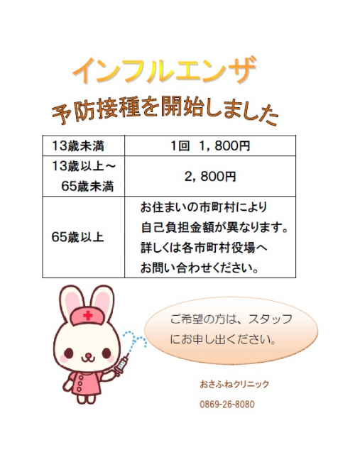 インフルエンザ予防接種が始まっています