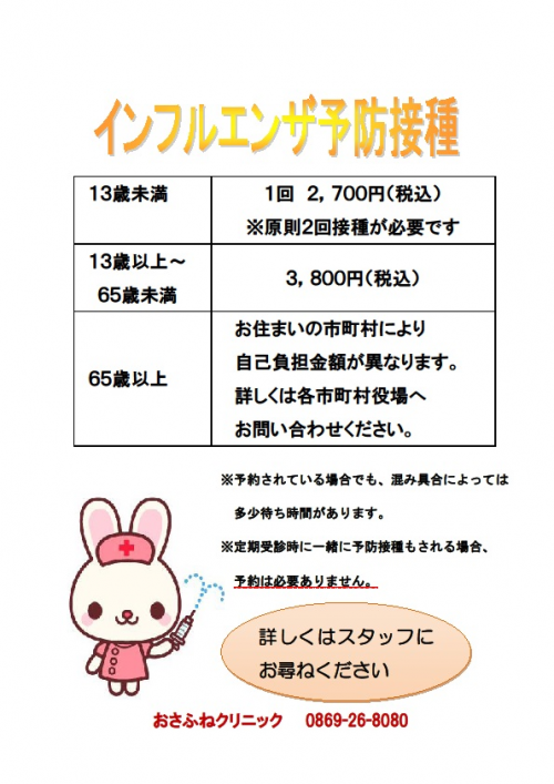 インフルエンザの予防接種が始まりました
